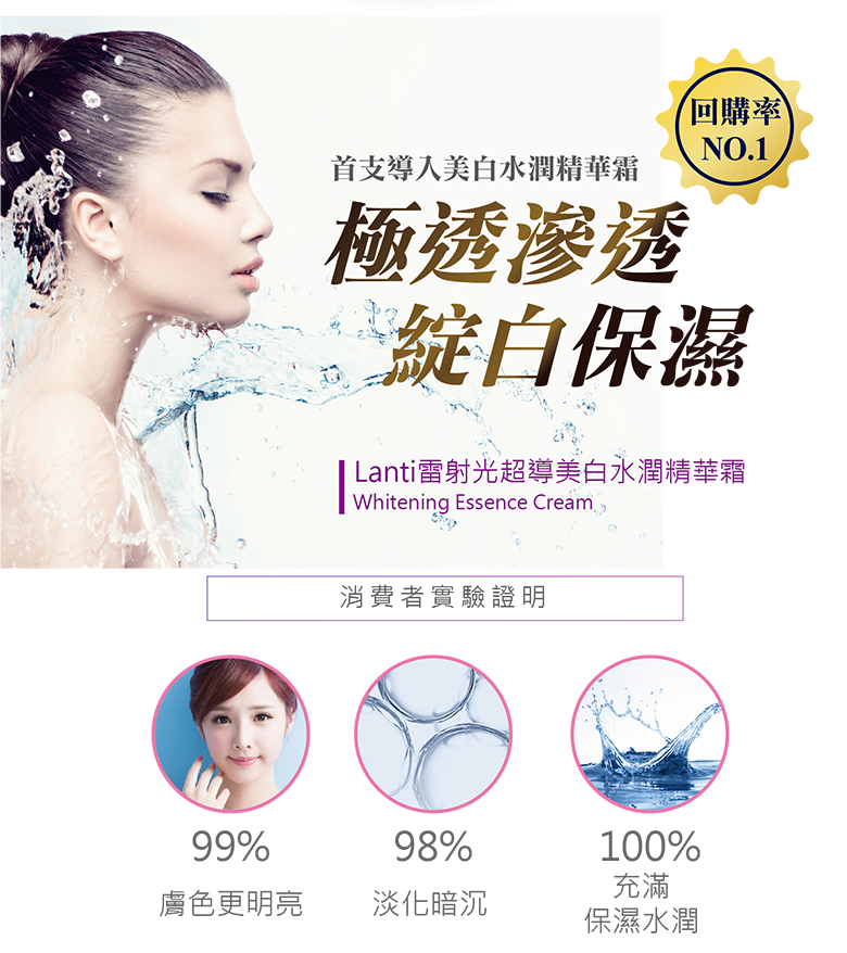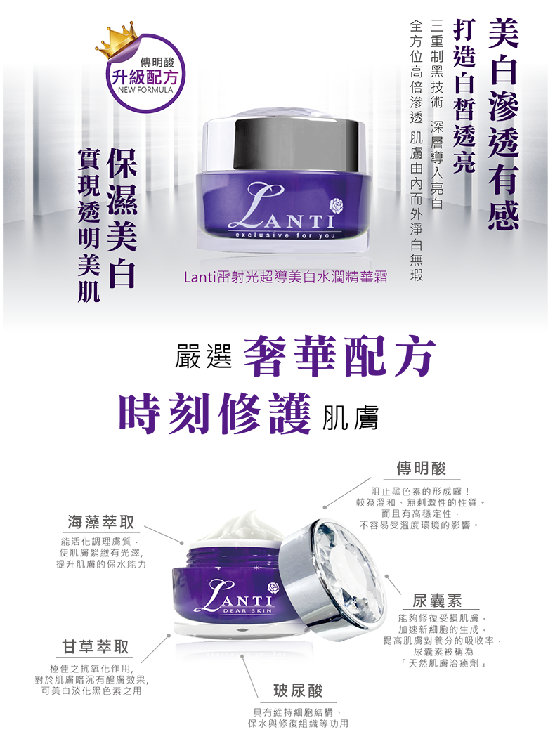 ◆商品名稱: Lanti雷射光超導美白水潤精華乳霜