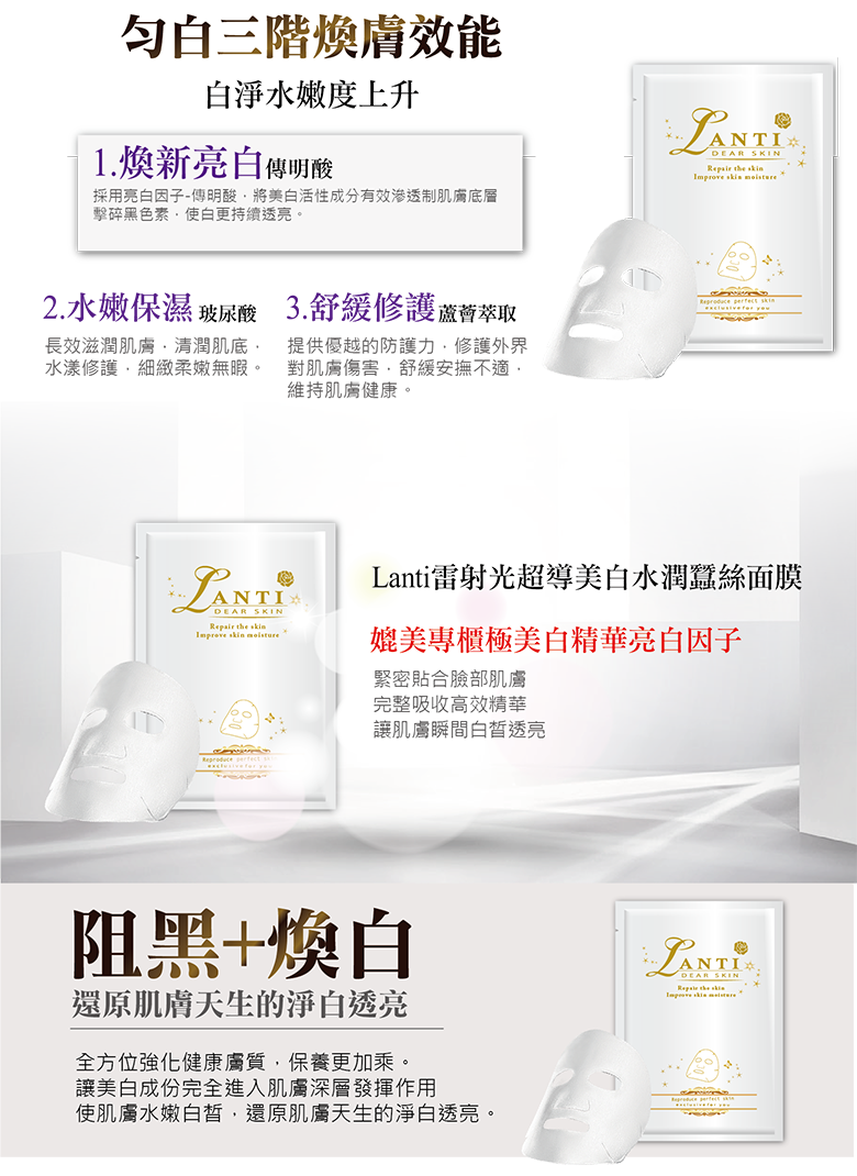 ◆商品名稱: Lanti雷射光超導美白水潤蠶絲面膜