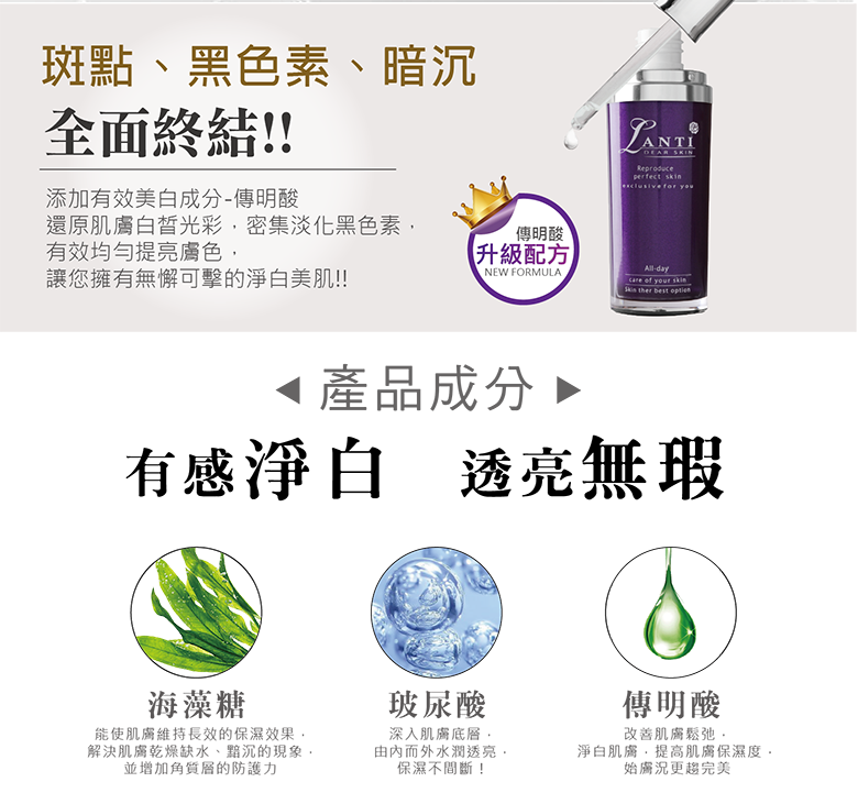 ◆商品名稱: Lanti雷射光超導美白淡斑精華液