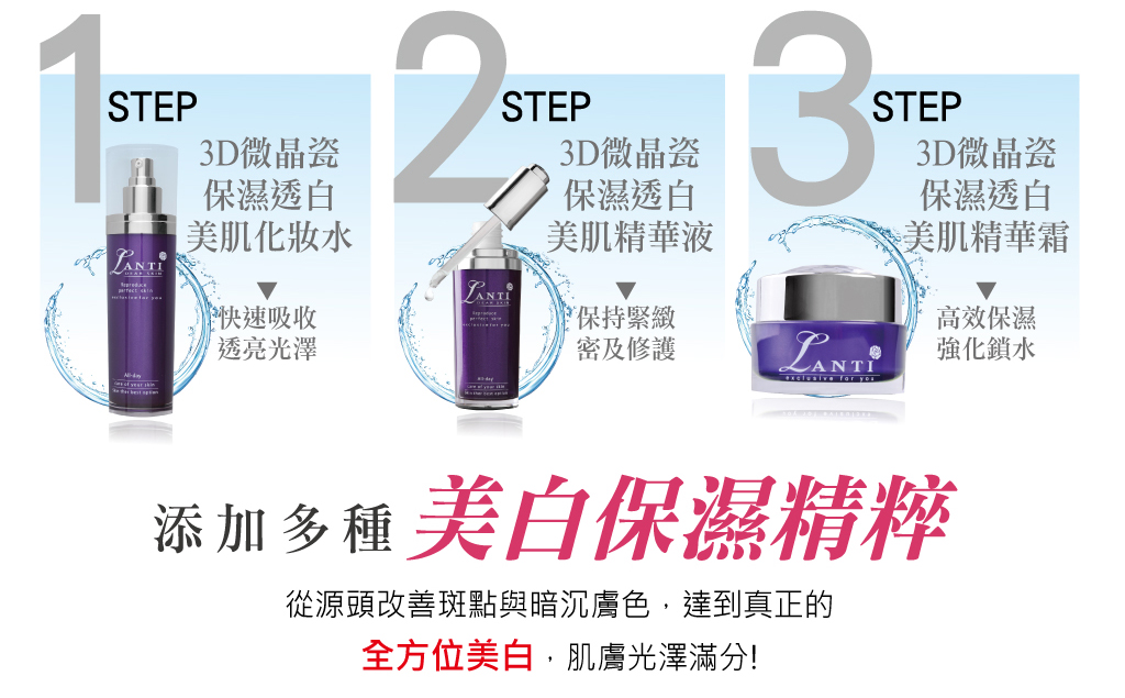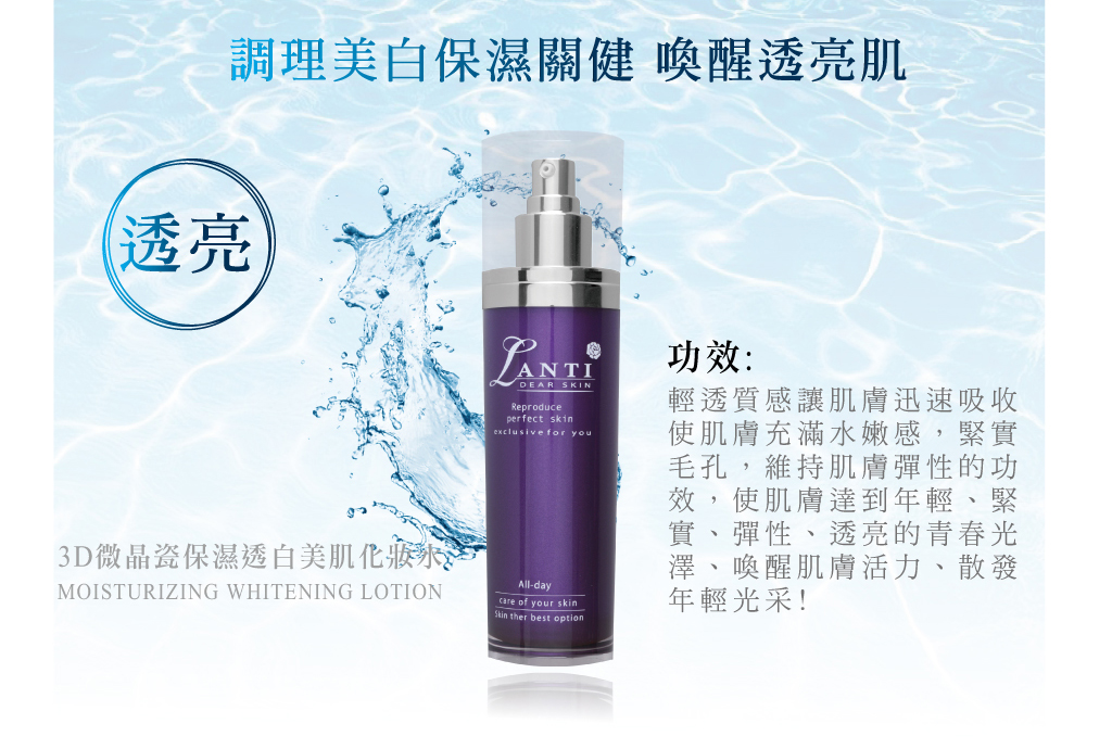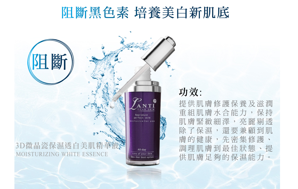 ◆商品名稱: Lanti3D微晶瓷保濕透白美肌精華液