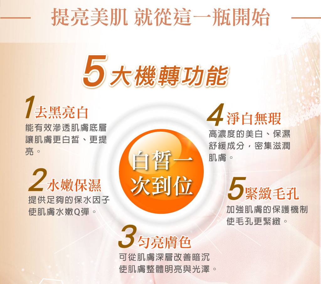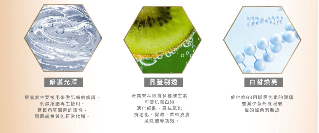 透白X亮白X淨白  三效全方位白皙機制