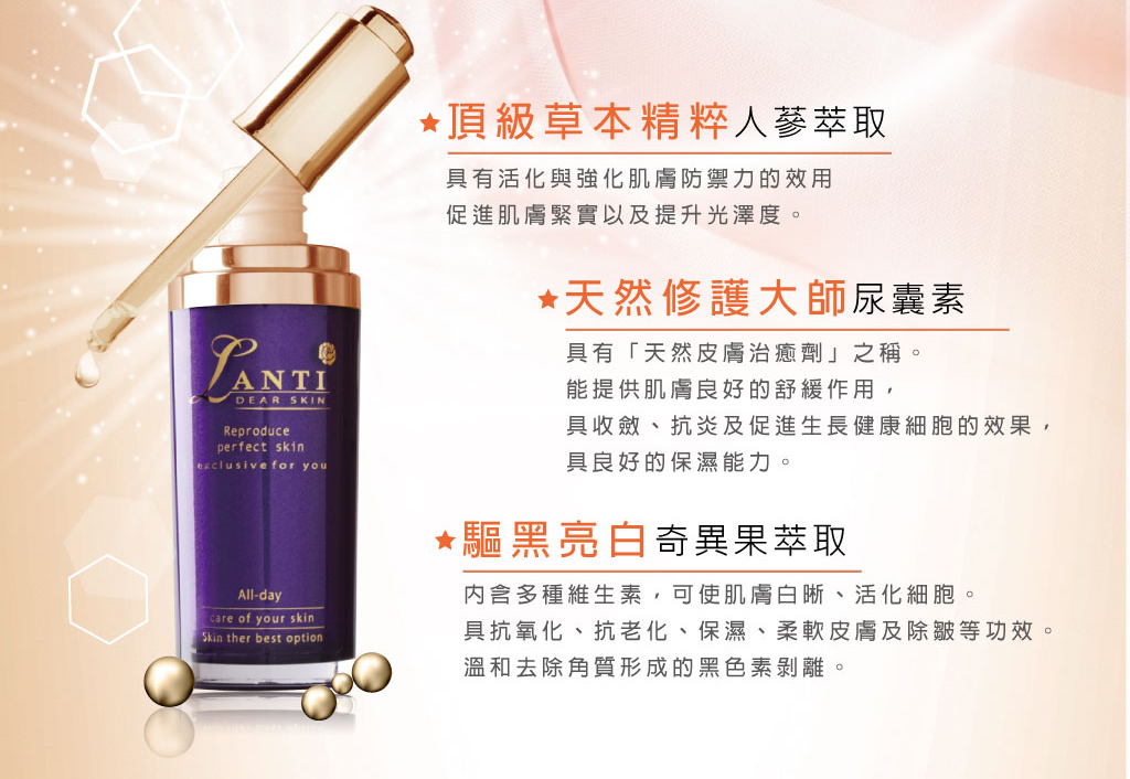 ◆商品名稱: Lanti晶鑽光感新生雪肌精華液